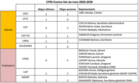 Composition nominative de la CPRI Centre Val de Loire 2025-2029